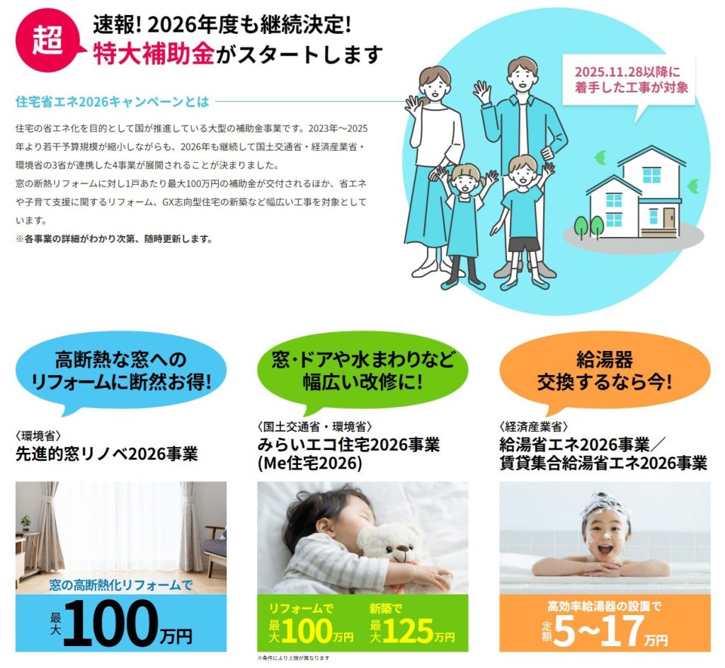 住宅の省エネ化を目的として国が推進している大型の補助金事業です。