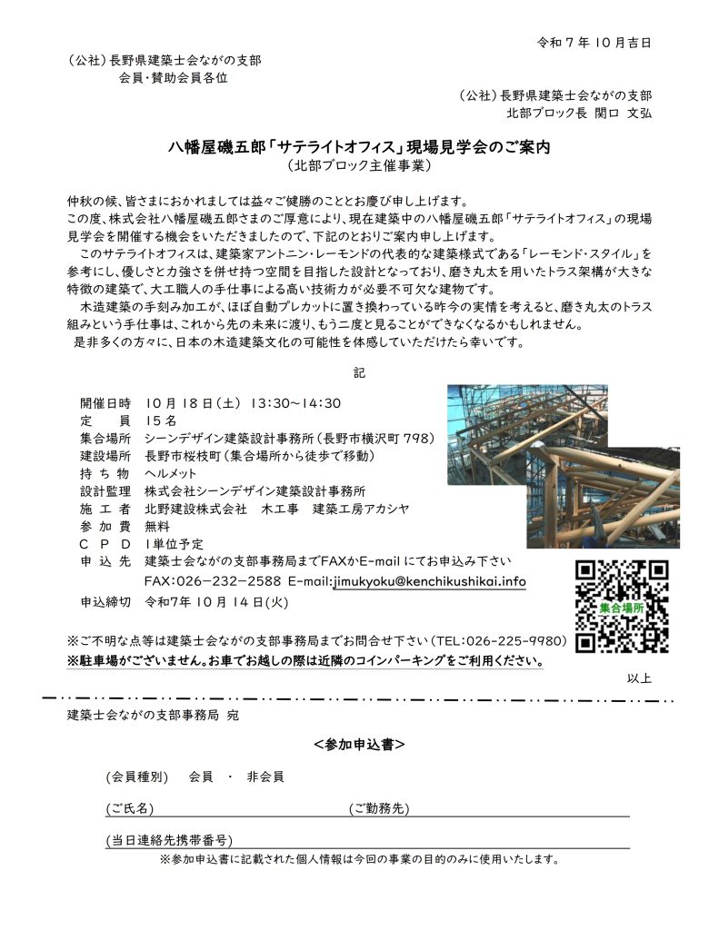 八幡屋磯五郎「サテライトオフィス」現場見学会のご案内 2025 9/30 イベント情報 お知らせ 講習会勉強会情報 2025年9月29日2025年9月30日 イベント情報 お知らせ 講習会勉強会情報 この記事が気に入ったら いいね または フォローしてね! Follow @nkenchikushikai URLをコピーしました! URLをコピーしました! YKK AP この記事を書いた人 事務局 この著者の記事一覧へ 関連記事 つちおと 令和7年9月 第302号 2025年8月29日 信州鬼無里・奥裾花自然園 秋の紅葉散策 2025年8月27日 つきいちアーキ・セミナーまちづくり研修会「飯山の街並みに学ぶ&酒蔵見学(試飲付)」 2025年8月21日 全国大会「おおさか大会」研修旅行参加者募集のご案内 2025年8月1日 須坂市より「須坂都市計画 区域区分、用途地域、地区計画の変更について」 2025年8月1日 つちおと 令和7年7月 第301号 2025年7月1日 ~終了いたしました~ヨット・カヌー・バーベキュー at 野尻湖2025参加者募集のご案内 2025年6月24日 ~終了いたしました~長野びんずる参加のご案内 2025年6月24日 コメント コメントする コメントをキャンセルコメント ※ 名前 ※ メール ※ サイト 次回のコメントで使用するためブラウザーに自分の名前、メールアドレス、サイトを保存する。 Δ